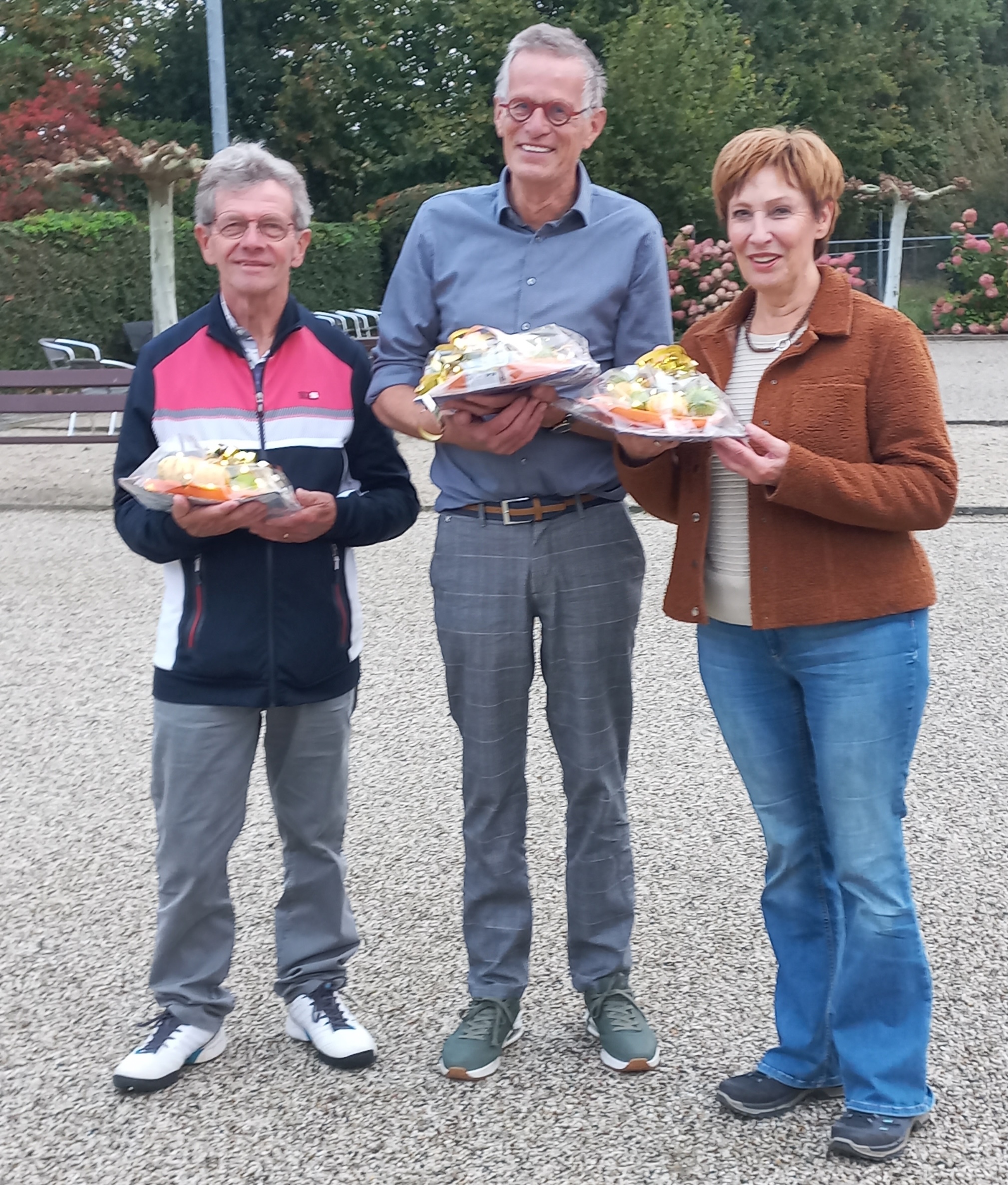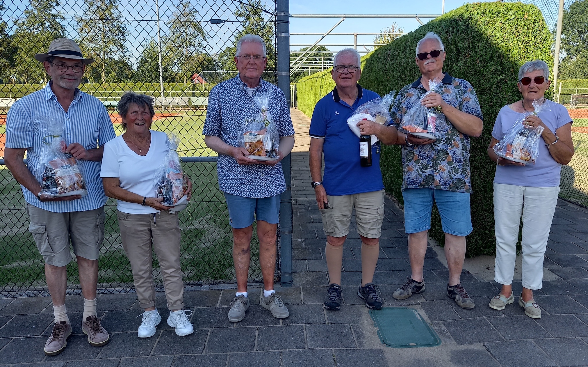 Alle bovengenoemde prijswinnaars ontvingen een hutspotpakket. De organisatie had nog een verrassing in petto. Tiny Janssen, de vrouw van Herman Janssen, had 3 setjes zelfgemaakte kaarten ter beschikking gesteld. Eentje werd uitgereikt als poedelprijs en was voor Henny Heuvelmans. De overige 2 setjes werden, via loting, gewonnen door Marianne Bertrams en Peter Thiede. Bovendien ontvingen nog alle deelnemers een doosje Toffifee.